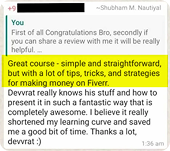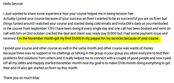 Devvrat is one of the genius when it comes to fiverr..at such an young age is inspiring the people older then him. And yes, the course is definitely amazing..I would say, you should definitely buy this course if you don’t hate money.. but if you hate money, you skip this course… because this course will give you strategies that are guaranteed to help anyone make money on fiverr