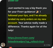 Just wanted to say a big thank you for your Fiverr guidance! followed your tips, and I’ve already, I landed my early orders on my new account. Your advice really made a difference. Thanks again for all the help!
