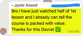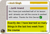 Certainly, after your enrollment, you will be included in Devvrat’s private WhatsApp group, allowing you to connect with fellow students and receive direct guidance from Devvrat.