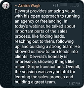 Still Thinking and Deciding to Enroll for this exclusive training? This is not a course, it’s a business coaching and it requires investment. Learn from me, Devvrat, who is the founder of Bforbranding, a marketing agency which has done over $6 Million dollars for clients tracked revenue. You will learn and get support for 10 Times More than what you’ve paid for. I Promise!