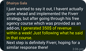 I just wanted to say it out, I haven’t actually gone ahead and implemented the Fiverr strategy, but after going through his free agency course which was provided as an add-on, I generated 350$ of revenue within a week! Just following what he said in that course. Next step is definitely Fiverr, hoping for a similar response there!