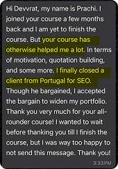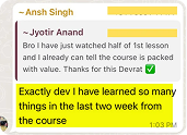 Then one day scrolling through instagram, saw the ad for Devvrat’s course, and instantly I had some trust over him that this is the guy I want. So, I quickly signed up for the course and was super excited.