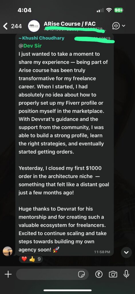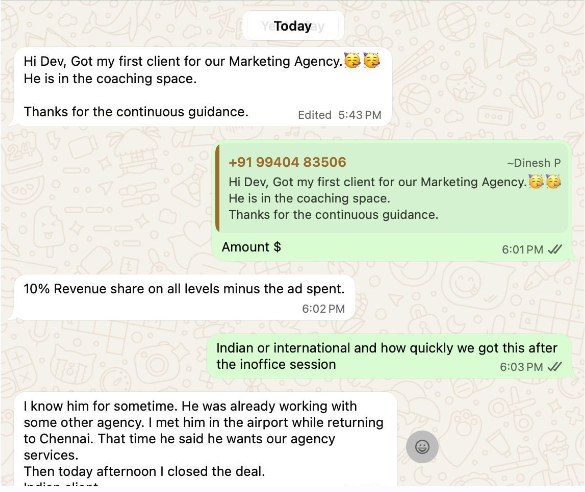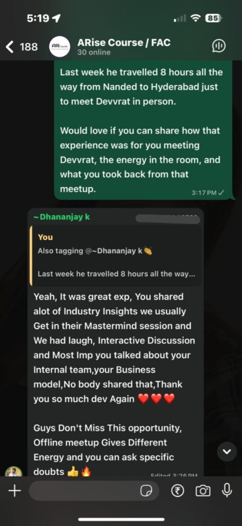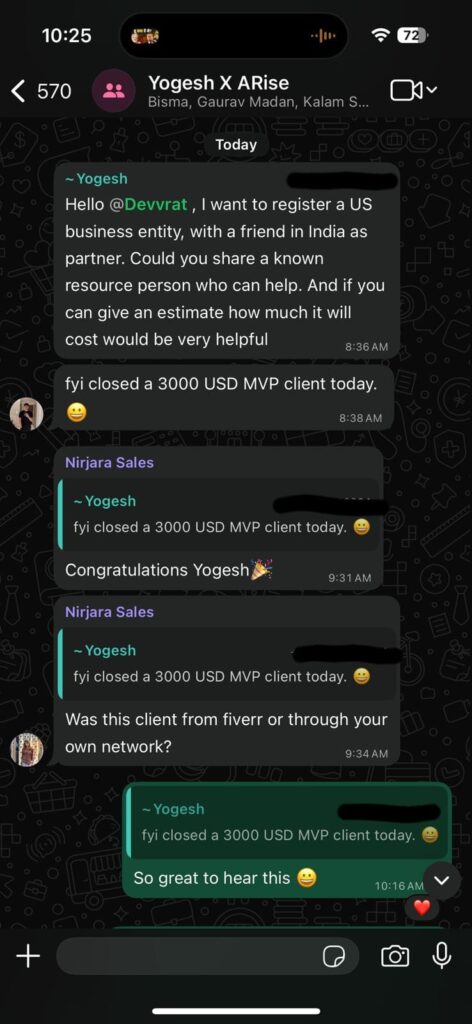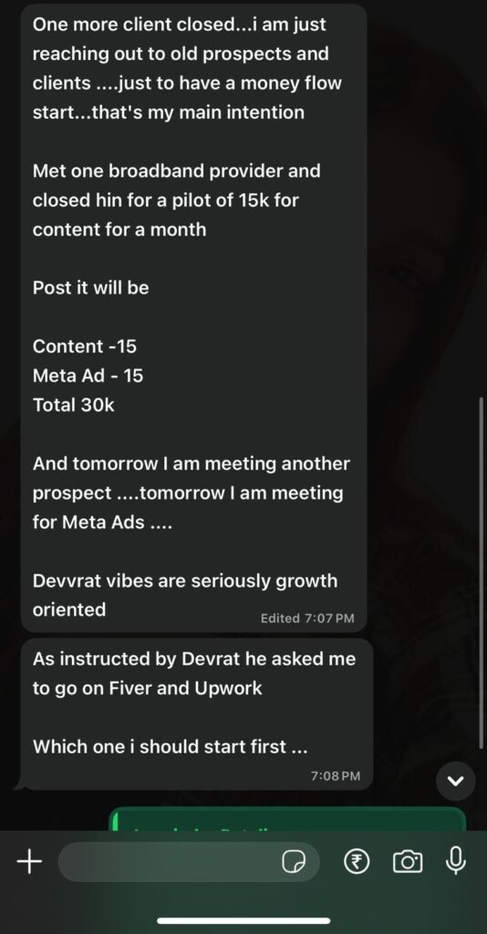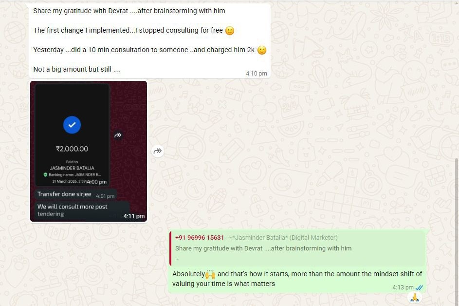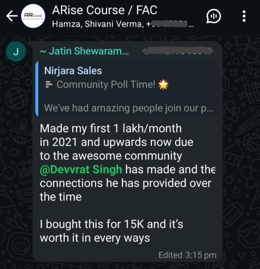 ”I have generated $1000+ from Devvrat’s WhatsApp community itself.”