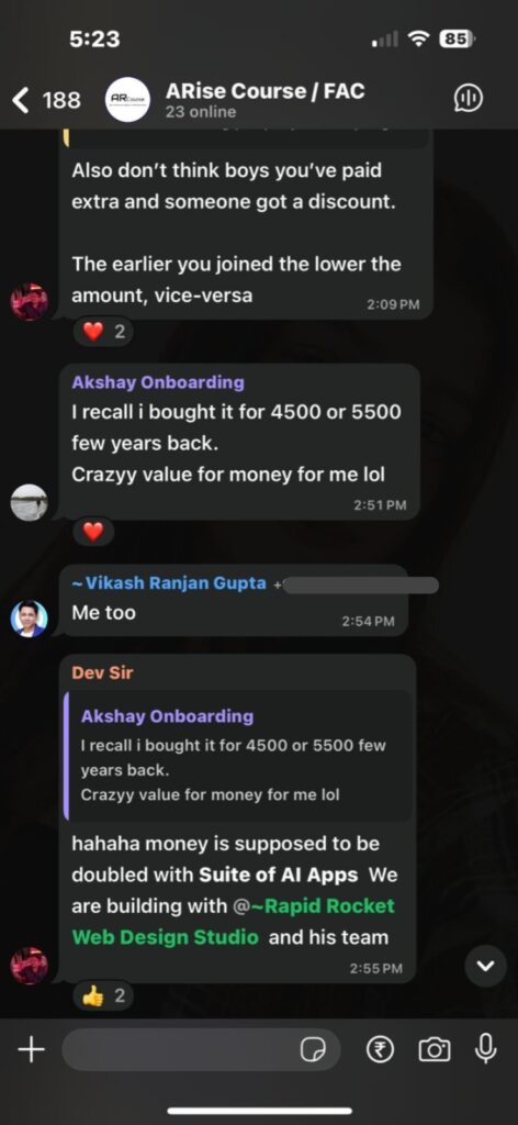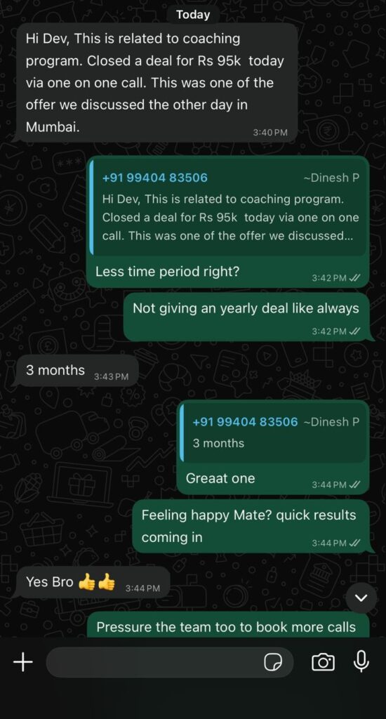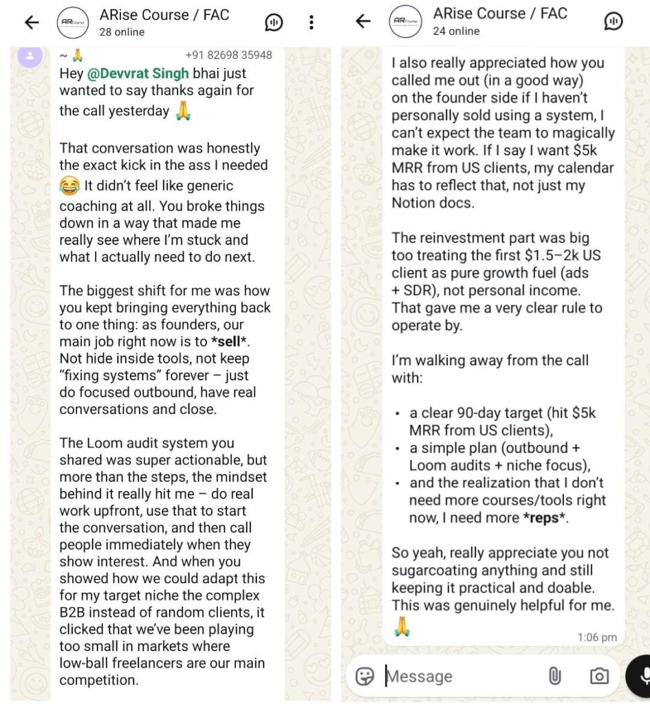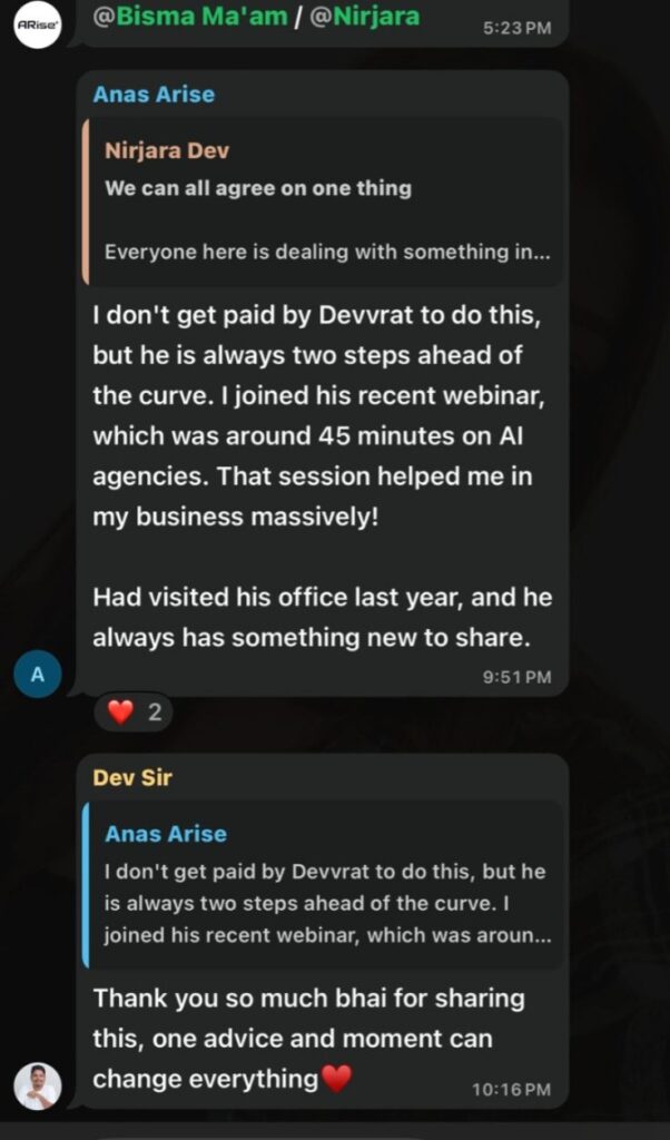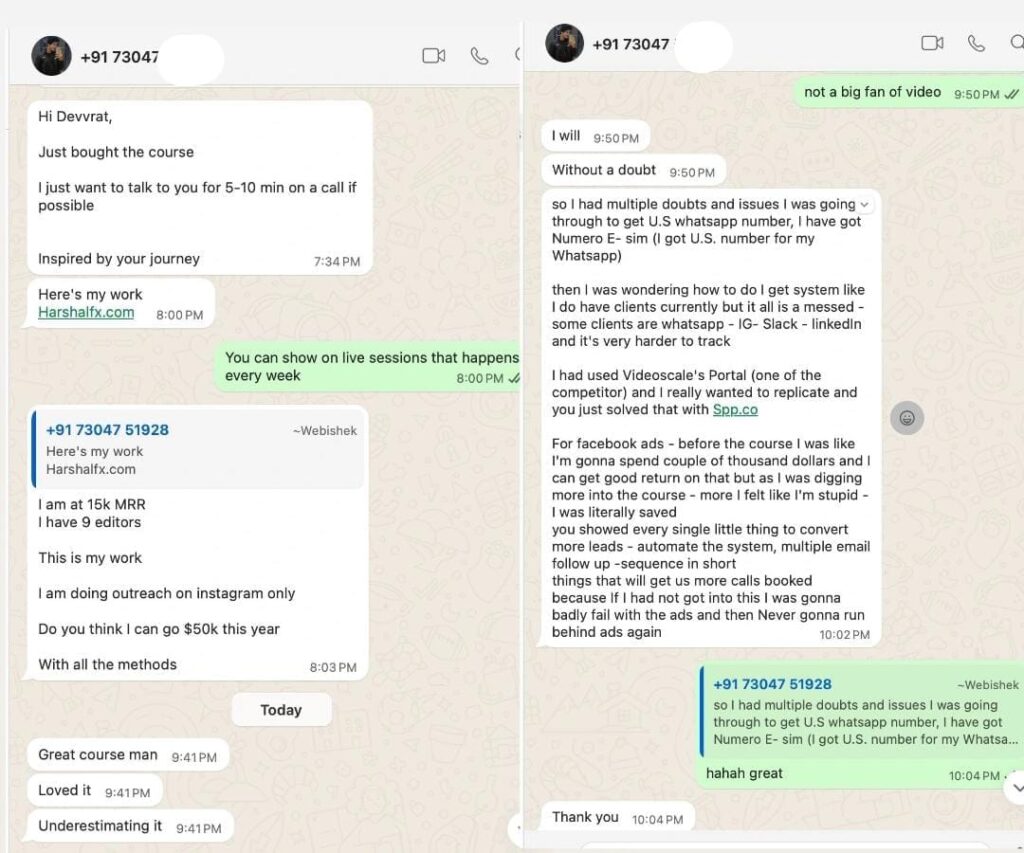 ”I have generated $1000+ from Devvrat’s WhatsApp community itself.”